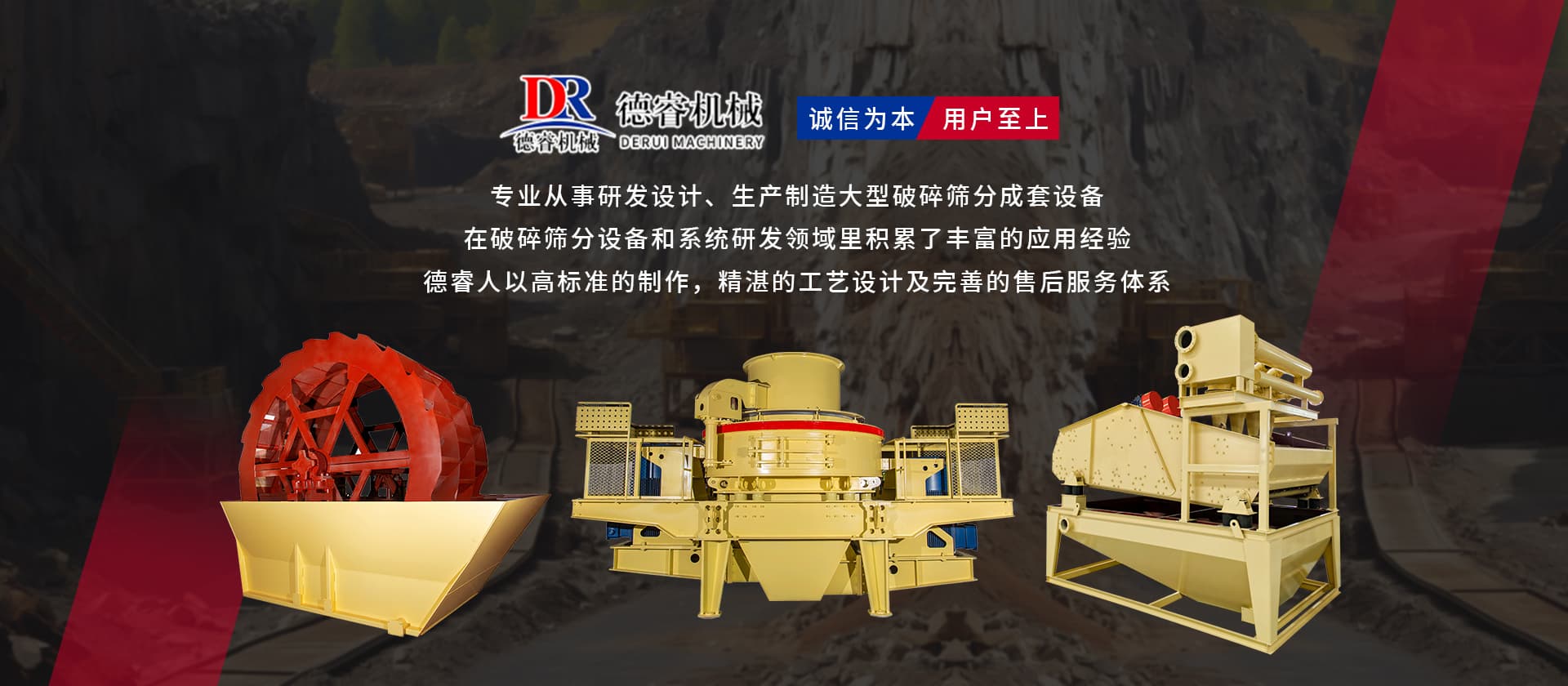 “誠信為本,用戶至上”德睿人以高標準的制作,精湛的工藝設計及完善的售后服務體系在破碎篩分設備和系統(tǒng)研發(fā)領域里積累了豐富的應用經(jīng)驗。借助在破碎行業(yè)的豐富經(jīng)驗,公司可向客戶提供碎石制砂生產(chǎn)線設計、安裝、調(diào)試等交鑰匙工程,同時承接破碎系統(tǒng)的爆破、裝運、破碎等生產(chǎn)運行總承包。